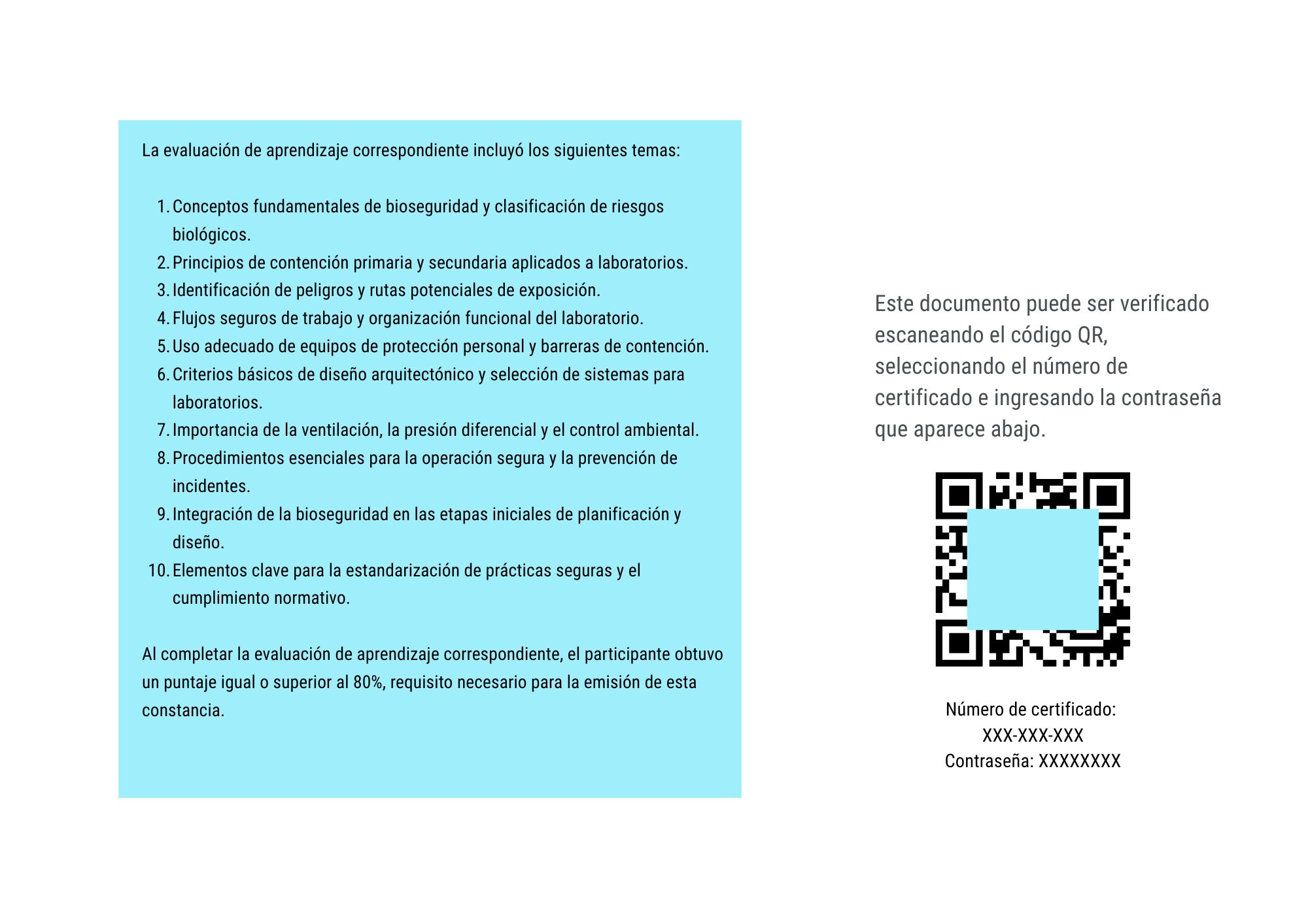 Cada constancia incluye un paso de verificación sencillo que garantiza que refleje de forma precisa el nivel de interacción con el contenido. Además, todas las constancias de BioLab son verificables por terceros y están protegidas con contraseña, lo que permite asegurar su autenticidad, conservar su trazabilidad y mantener un registro confiable que puede ser consultado en cualquier momento por instituciones, empleadores o personas interesadas.
