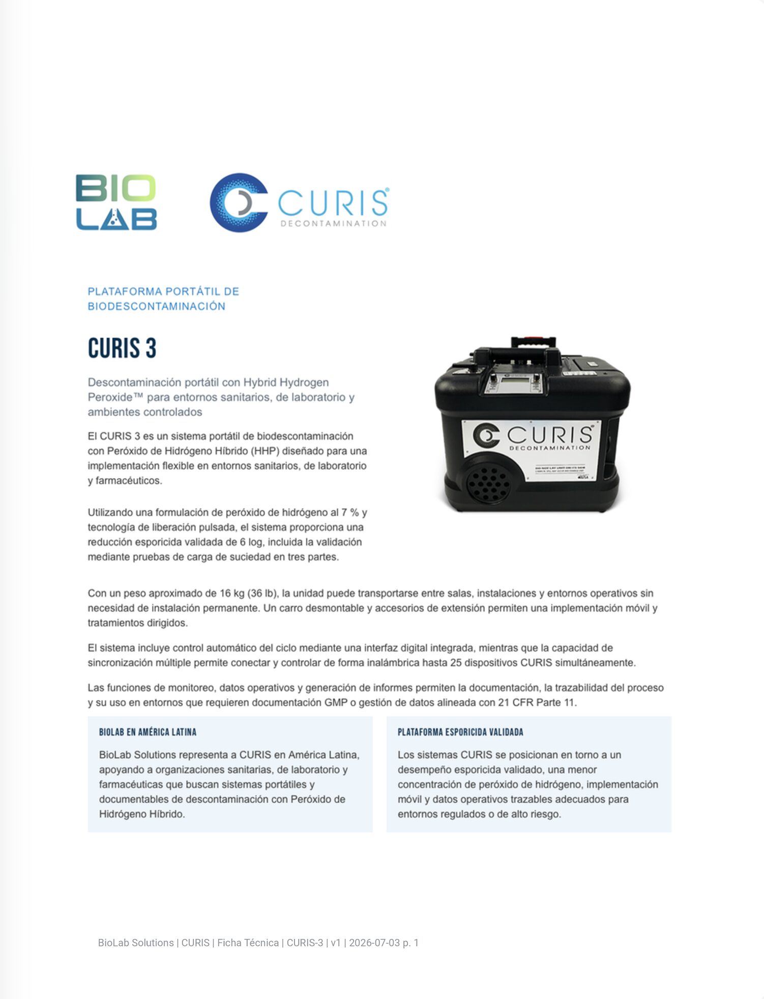 CURIS 3: Sistema portátil de descontaminación HHP™