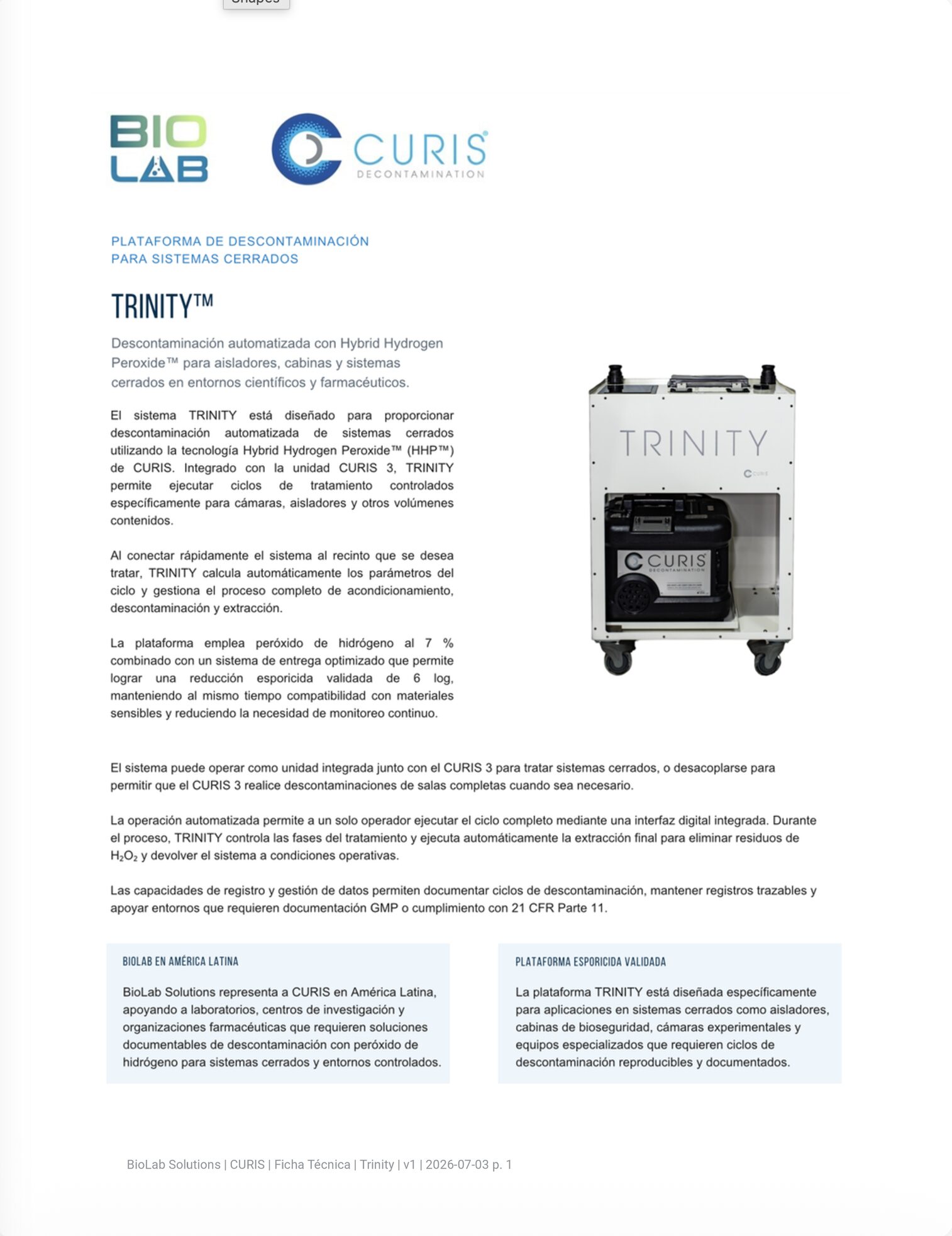 CURIS se compromete a proporcionar un soporte excepcional a sus clientes, y BioLab Solutions comparte este compromiso. Cuente con nosotros para trabajar con usted en cada etapa de su proyecto para garantizar que sus necesidades de biodescontaminación se satisfagan plenamente ahora y en el futuro. Póngase en contacto con el equipo de BioLab Solutions para solicitar un presupuesto.